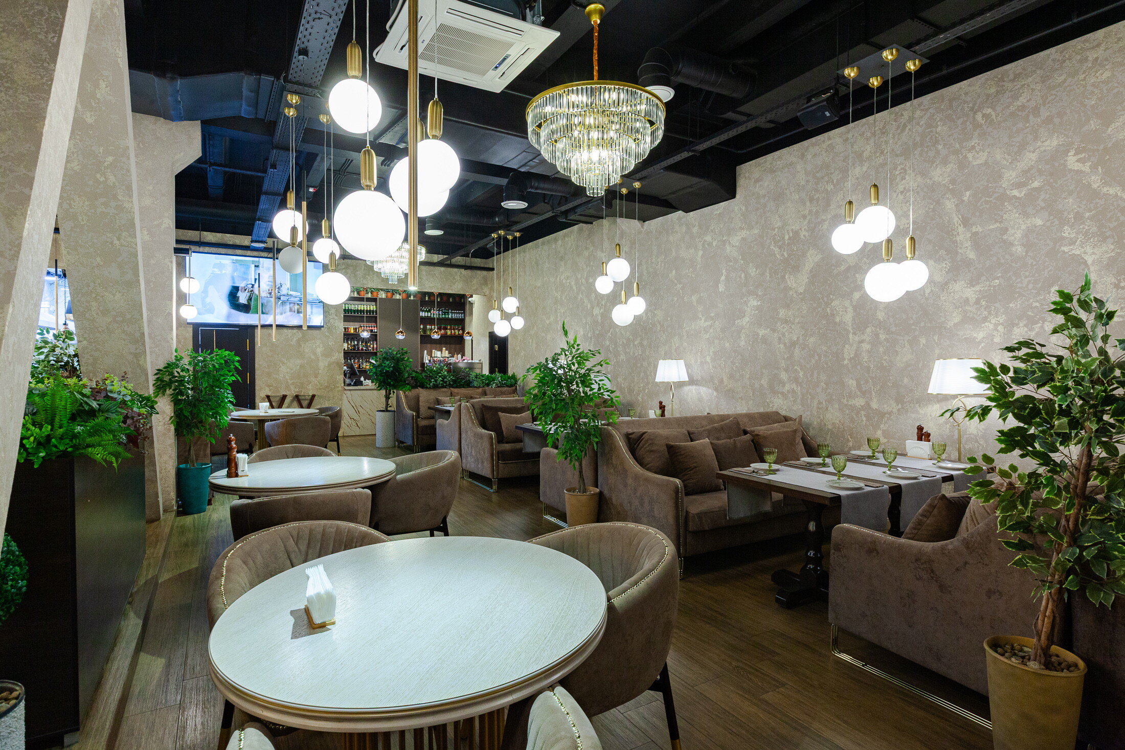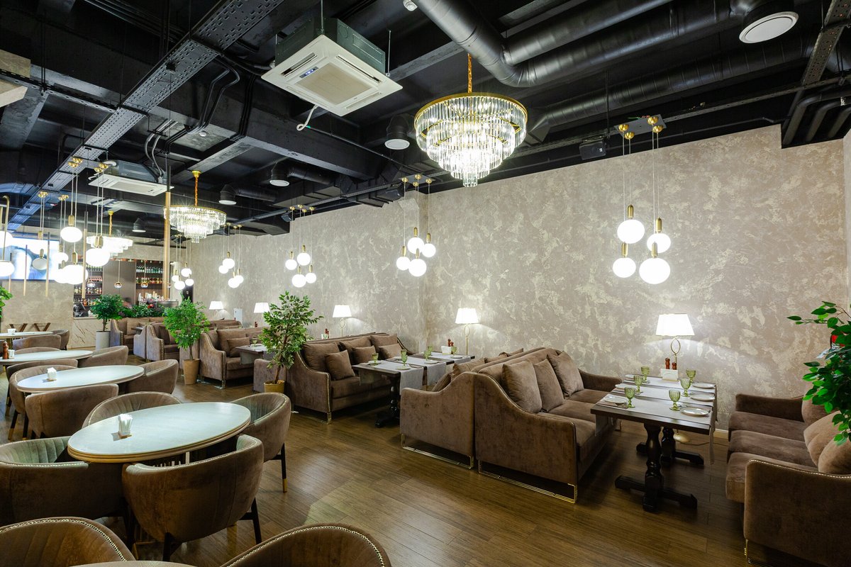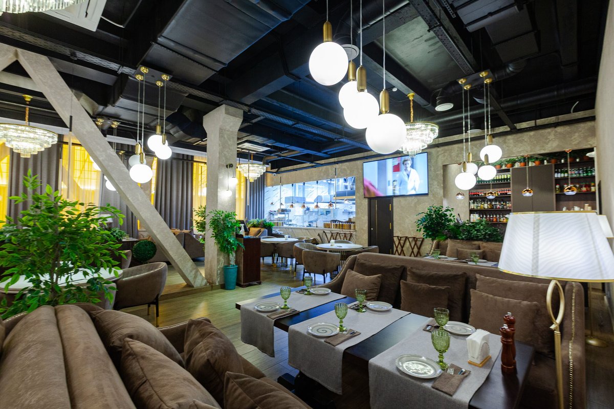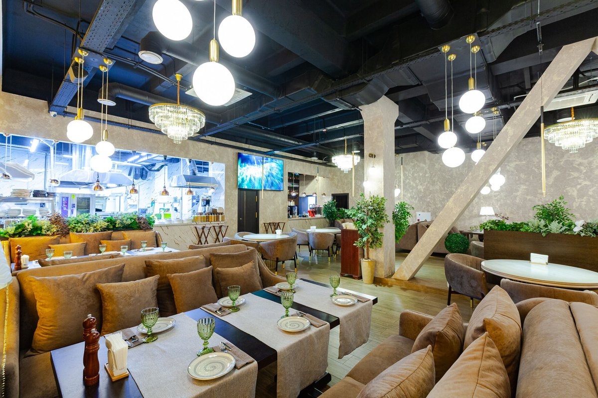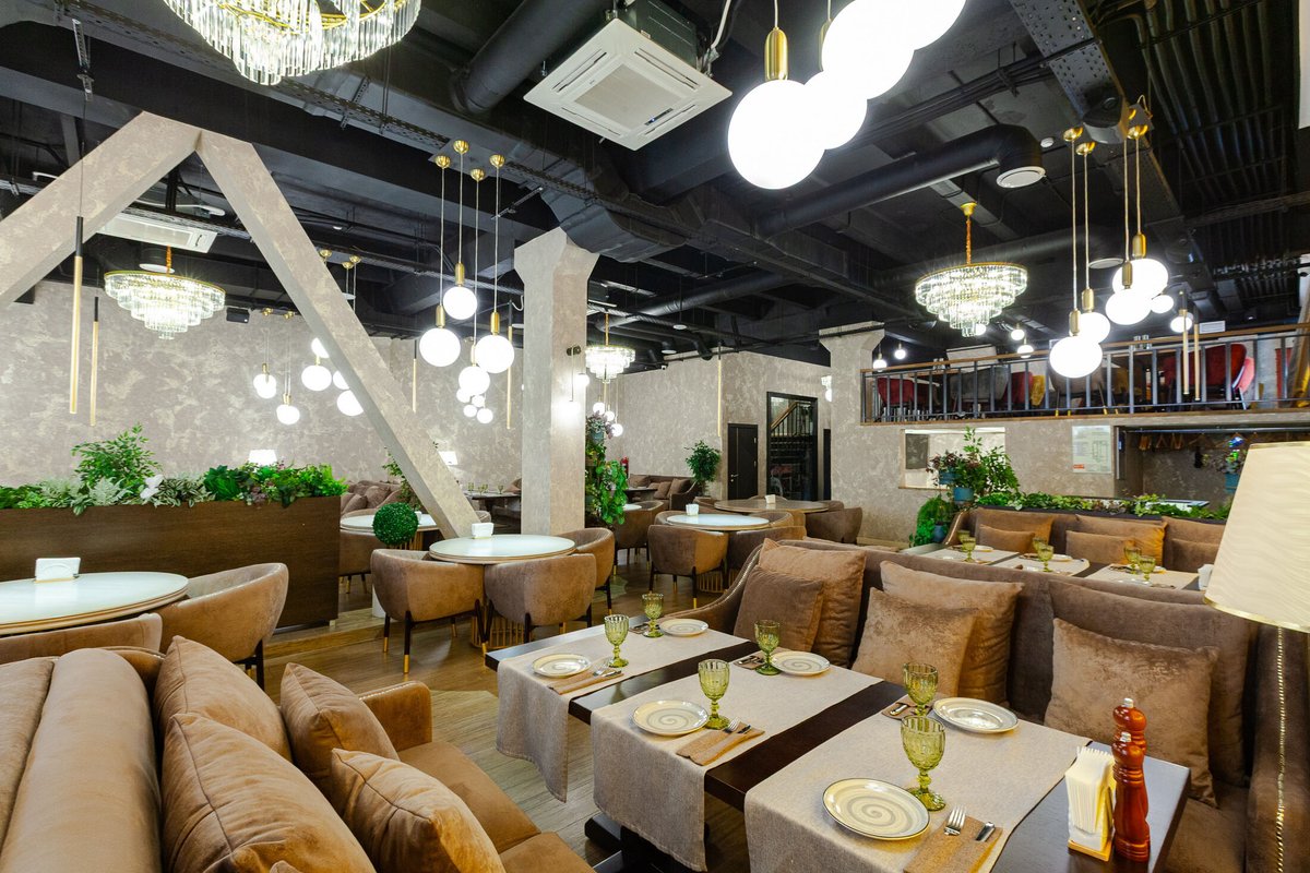 Помимо этого, наше заведение работает как гриль-бар, шашлычная, стейк-хаус, хинкальная, фрэш-бар, кофейня, чайхана, кафе-мороженое и спорт-бар.
